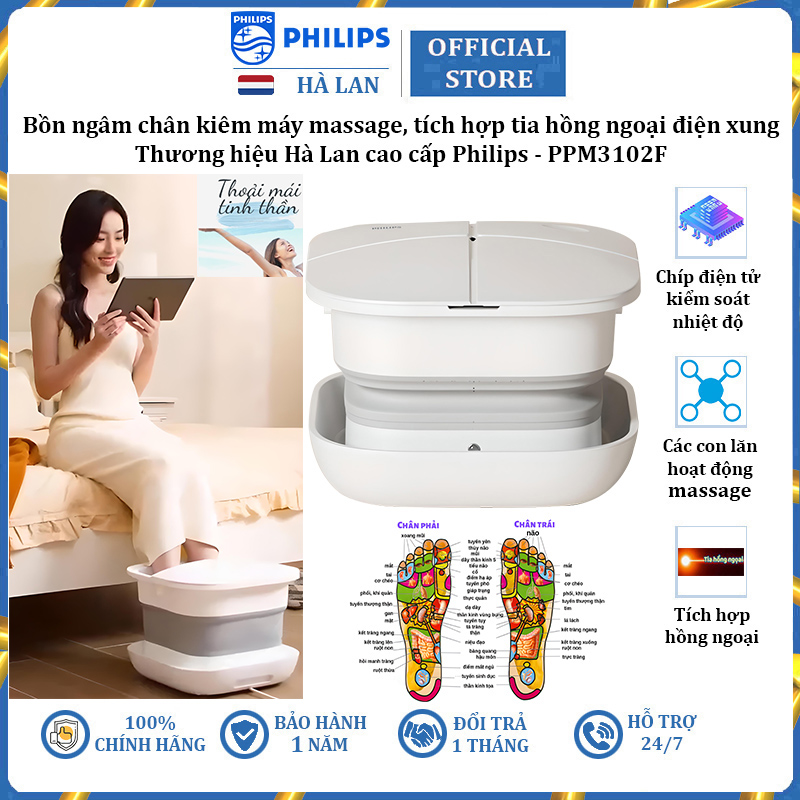 - Với mục tiêu cải thiện cuộc sống con người, Philips không ngừng nỗ lực và sáng tạo nhằm đưa công nghệ và kỹ thuật tối tân và tiết kiệm năng lượng vào những dòng sản phẩm đa dạng như: Máy massage chân, mặt, vai gáy, máy cạo râu, máy ép trái cây, máy hấp, máy pha cà phê, bình siêu tốc… Các sản phẩm của Philips đang được tiêu thụ rộng rãi tại Việt Nam, có mặt tại 90% các cửa hàng điện gia dụng và dễ dàng tìm thấy ở tất cả các siêu thị lớn trên cả nước. Qua nhiều năm đứng vững trên thị trường, đến nay, Philips hiện là lựa chọn yêu thích của người tiêu dùng Việt. Tiếp nối thành công bồn ngâm kiêm massage chân cao cấp Philips PPM3101FE, cuối năm 2023 hãng Philips cho ra mắt Bồn ngâm chân kiêm máy massage Philips PPM3102F