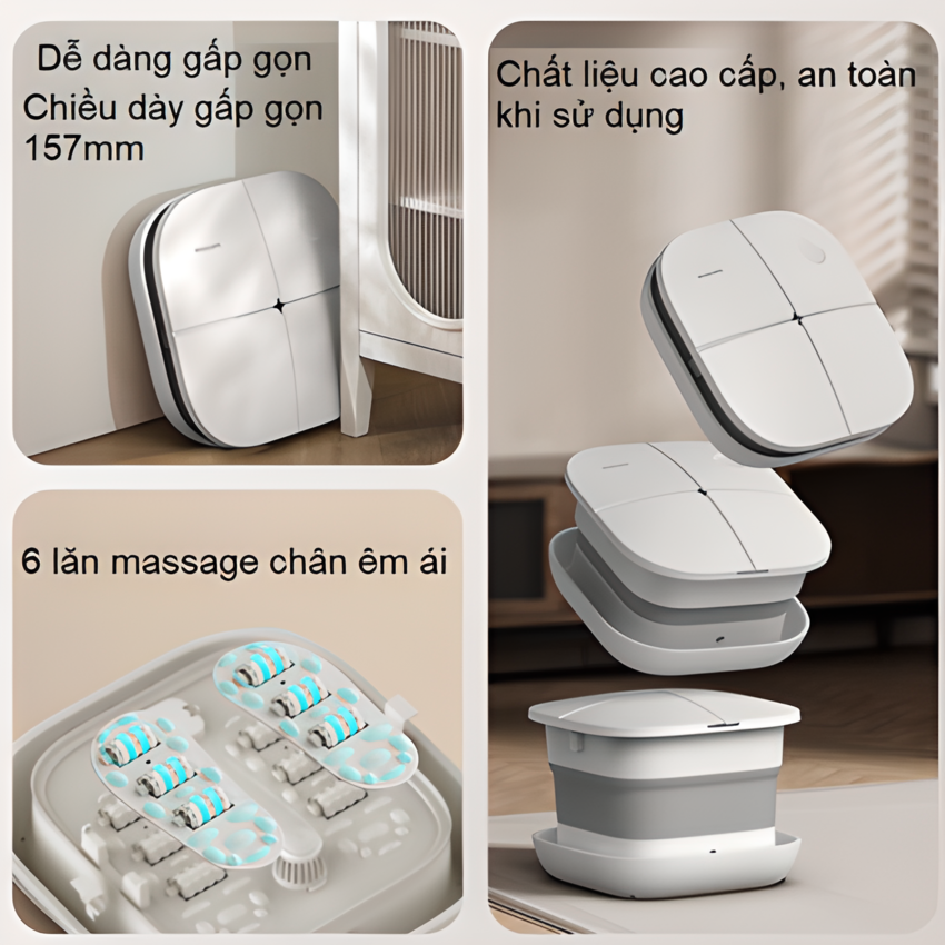 Thiết kế dạng gập, khi gập lại chỉ dày 15.7cm, chiếm khoảng 0,15m. Bạn có thể dễ dàng đặt máy trong phòng nhỏ. Chỉ cần kéo và ấn để bắt đầu tận hưởng trải nghiệm thư giãn chân.
