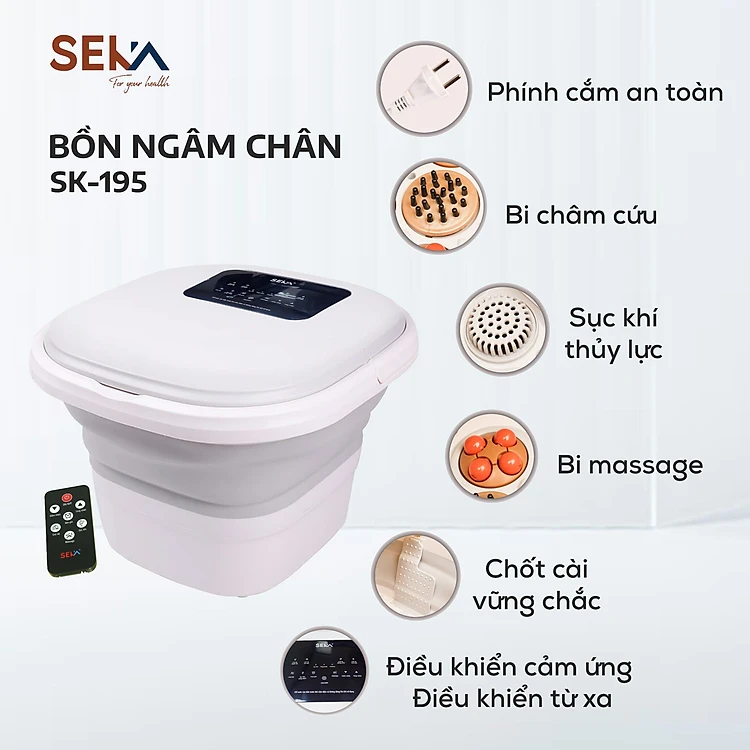 Bồn Ngâm Chân Gấp Gọn SK-195 Con Lăn Tự Động Làm Nóng Và Giữ Ấm Nước, Có Điều Khiển Cầm Tay - Chậu Ngâm