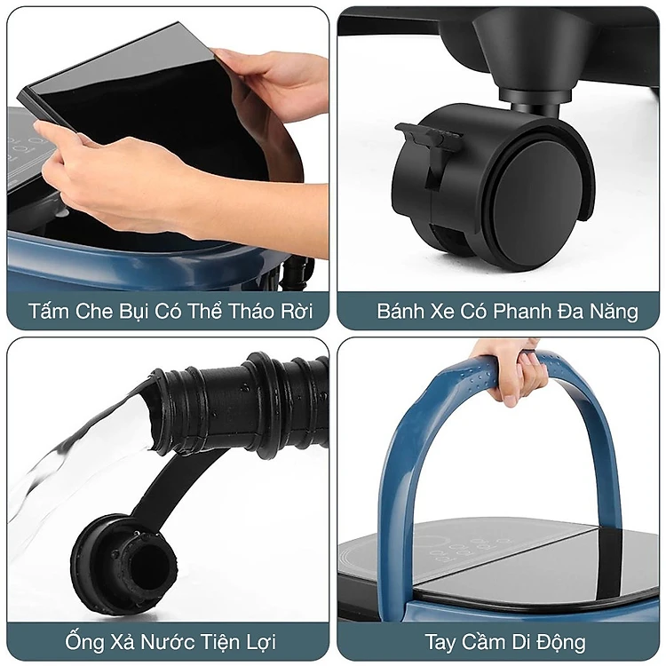 Nắp Đậy Điều Chỉnh: Nắp đậy có thể hỗ trợ quá trình xông hơi bàn chân và giữ ấm nước, tăng trải nghiệm thư giãn.