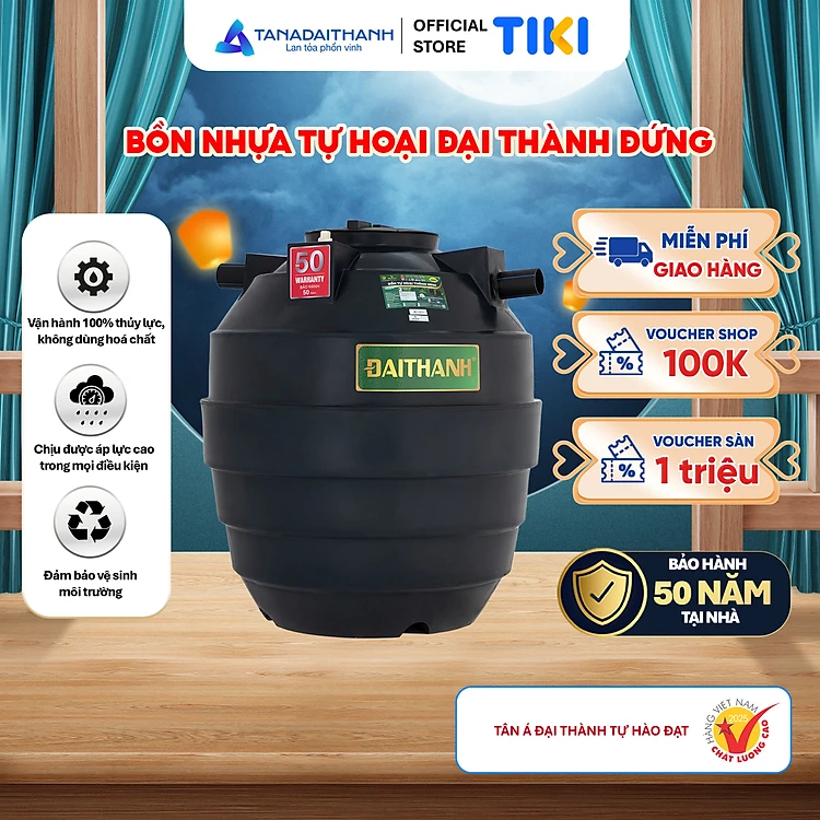 Bồn nhựa tự hoại Tân Á Đại Thành Đứng 500L 1000L 1500L 2000L Chính Hãng, Bảo hành 50 năm