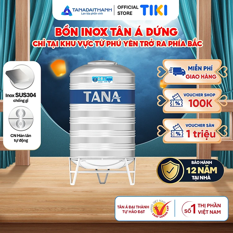 Bồn nước inox Tân Á Đại Thành Đứng (500L, 1000L, 1500L, 2000L), SUS 304 - Chính hãng, Bảo hành 12 năm