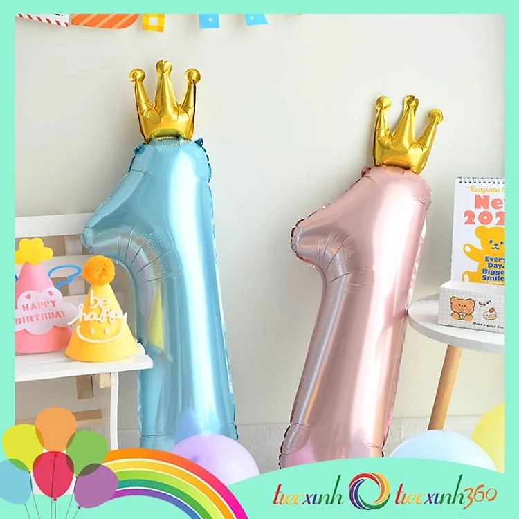 Bong bóng trang trí tiệc xinh số 1 vương miện