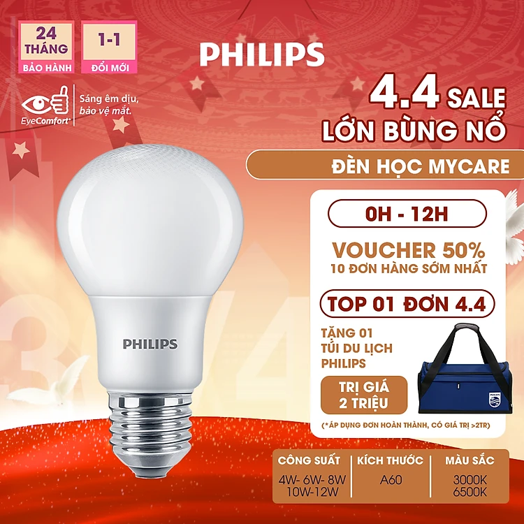 Bóng đèn PHILIPS LEDBULB Mycare A60 -Công suất (4W,6W,8W,10W,12W) bảo vệ mắt