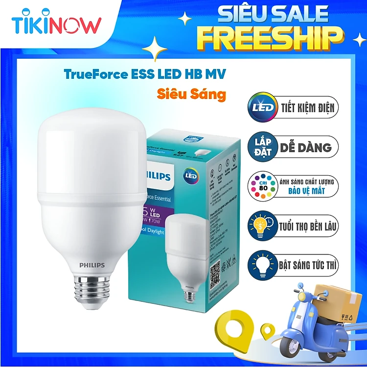 Bóng đèn Philips TrueForce Essential LED HB MV E27 - Ánh sáng Trắng, Hiệu suất chiếu sáng cao, Tiết kiệm điện, Chất lượng ánh sáng hoàn hảo - Hàng Chính Hãng