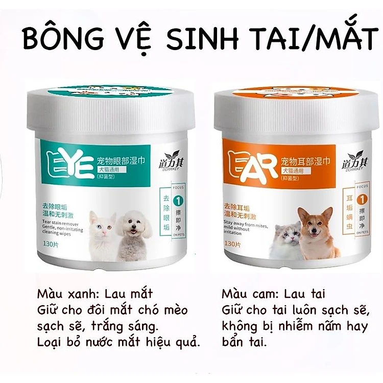 Bông lau vệ sinh vết ố mắt, vệ sinh tai cho chó mèo - Hộp 130 chiếc