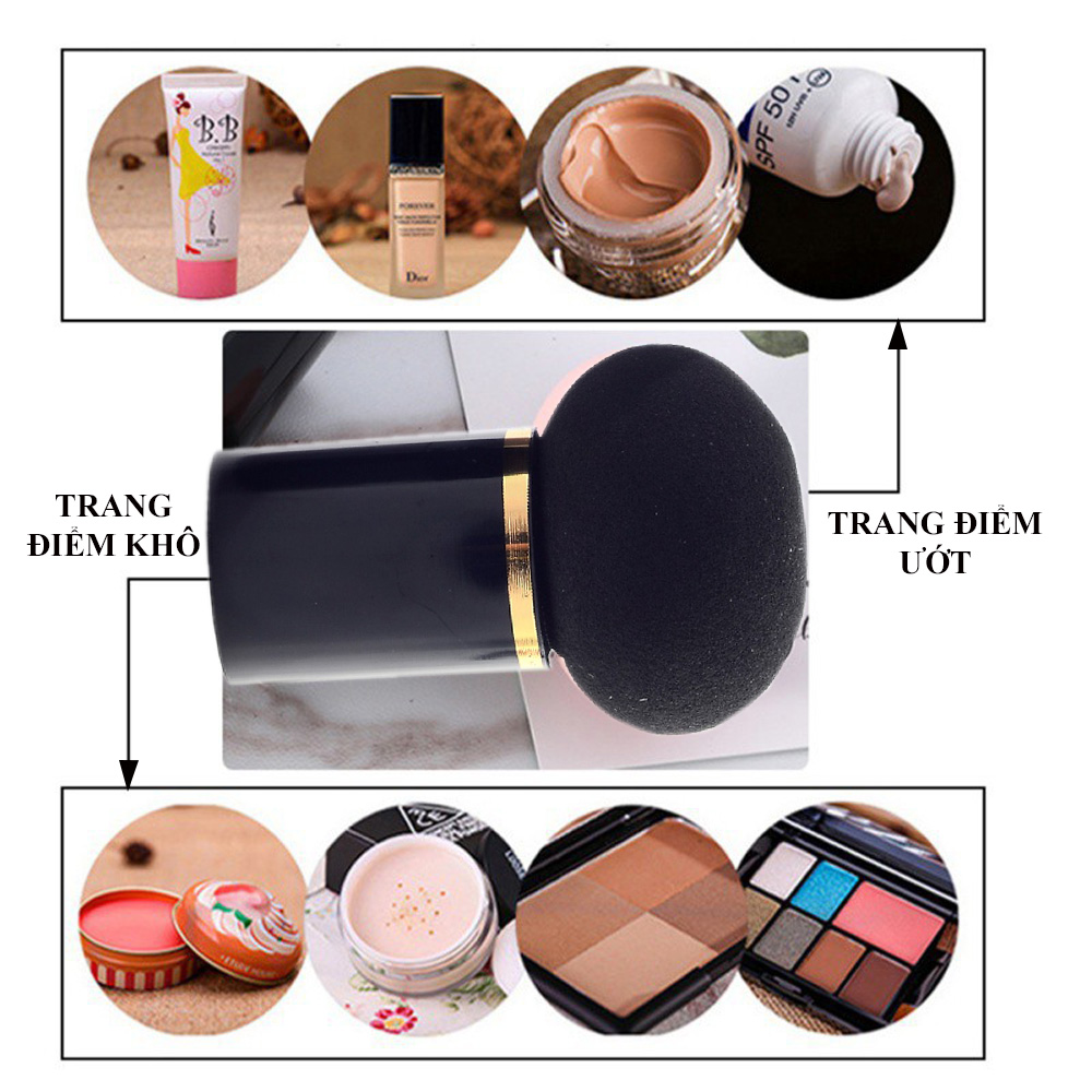 Bông phấn trang điểm hình cây nấm được sử dụng rất đa năng khi trang điểm, bạn có thể trang điểm cả dạng khô và dạng ướt như: tán kem nền , phấn nền, phấn phủ ( nén, bột, phấn má hồng), kem che khuyết điểm.