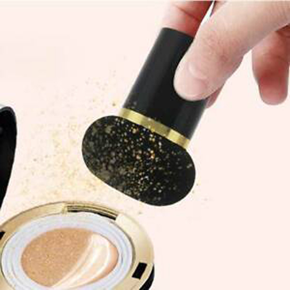 Trang điểm khô: nhẹ nhàng nhấn bông phấn hình cây nấm vào phấn bột ( hoặc phấn nén, phấn má hồng) rồi tán đều lên da mặt một lượng vừa đủ và trải đều lên da mặt cho đến khi da trở nên hoàn hảo