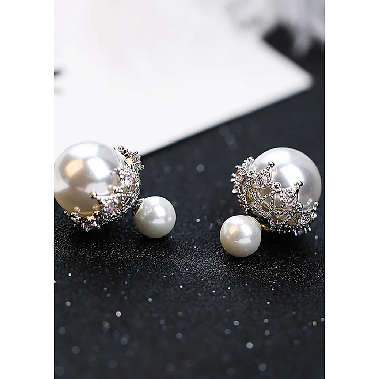 Bông tai 2 hạt châu to nhỏ đính đá cao cấp