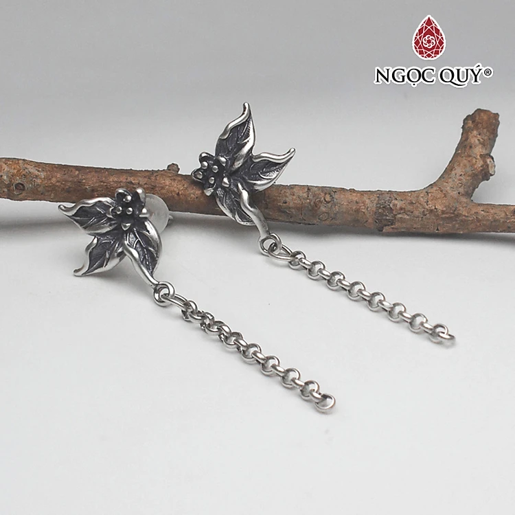 Bông tai bạc cánh hoa sát tai gắng hạt treo - Ngọc Quý Gemstones