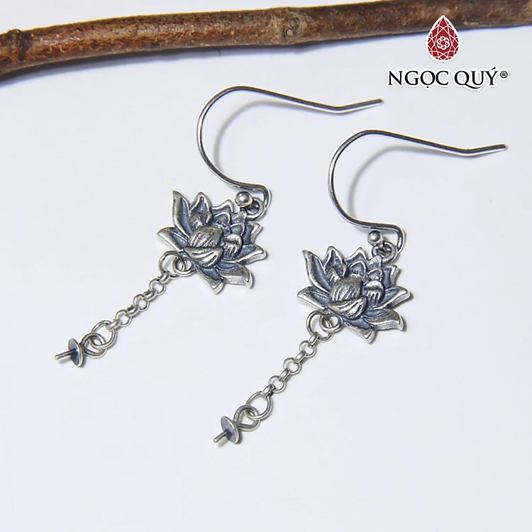 Bông tai bạc hoa sen gắn hạt treo (móc treo) - Ngọc Quý Gemstones