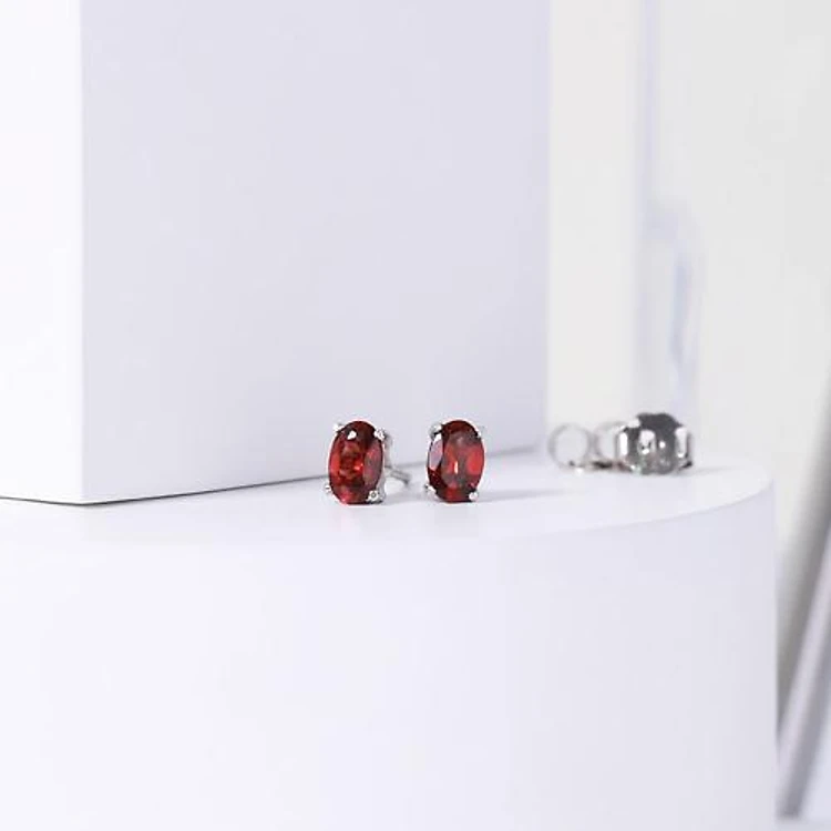 Bông tai bạc nữ đá Cz oval đỏ minimalist tphcm Gix Jewel BT12