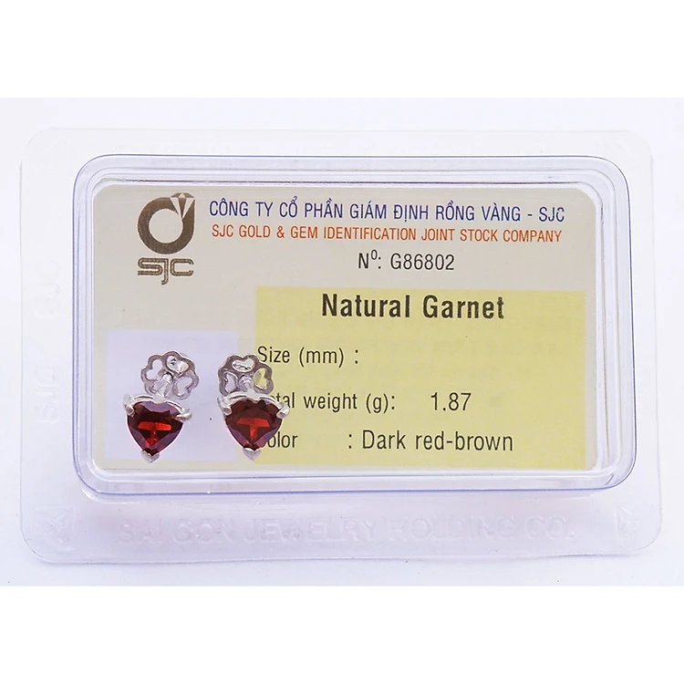 Bông tai đá Garnet thiên nhiên đỏ tự nhiên 5mm chuôi bạc trái tim kiểm định