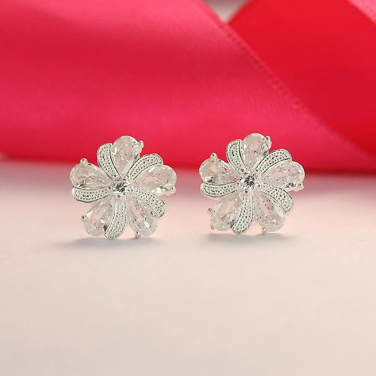 Bông tai nữ bạc 925 đẹp - Khuyên tai bạc nữ hình bông hoa đính đá cao cấp BTN0078