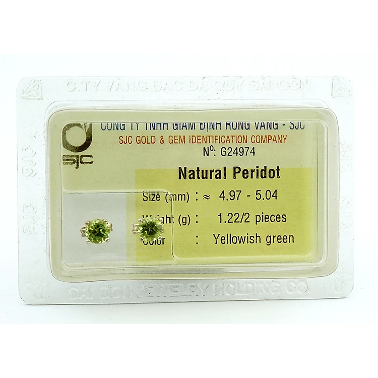 Bông tai nữ đá Peridot Ngọc Olivin tự nhiên mài giác tròn 5mm kiểm định