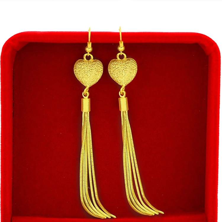 Bông tai nữ mạ 18k dáng dài kiểu Trái tim T1
