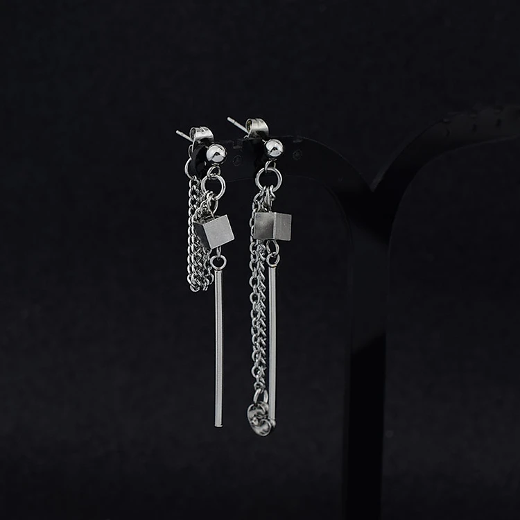 Bông tai Titan hình học không gian phiên bản xỏ lỗ đinh chất lừ