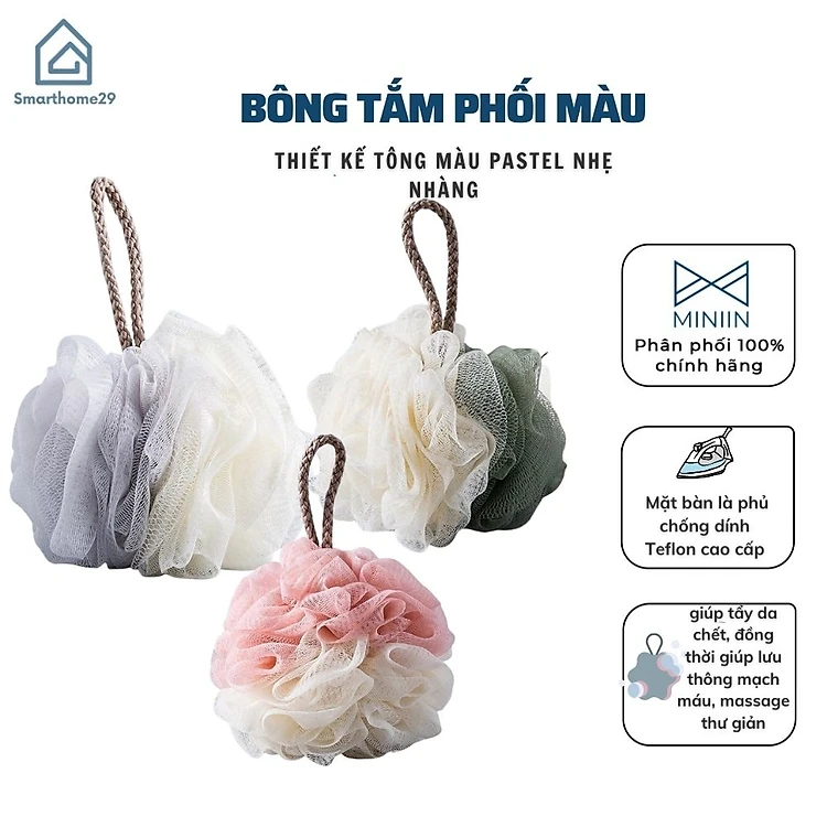 Bông Tắm Tròn Phối Màu Tạo Bọt Thích Hợp Cho Cả Gia Đình - Hàng Chính Hãng MINIIN -Màu Ngẫu Nhiên