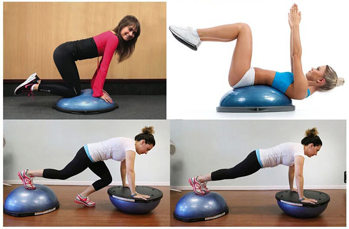 Bài tập này với bóng bosu giúp cho những ai gặp vấn đề về lưng dưới rất hữu dụng. hãy tập khoảng 4 hiệp với 20 – 25 reps/ hiệp,ghỉ giữa hiệp 2-3 phút.