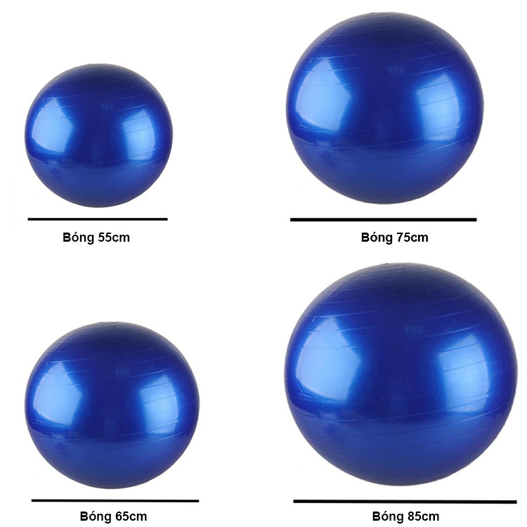 Bóng có 4 loại kích thước 55cm, 65cm, 75cm & 85cm: