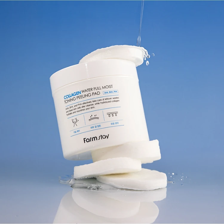 Bông tẩy tế bào chết và dưỡng ẩm da cho mặt collagen - Farmstay Collagen Water Full Moist Toning Peeling Pad