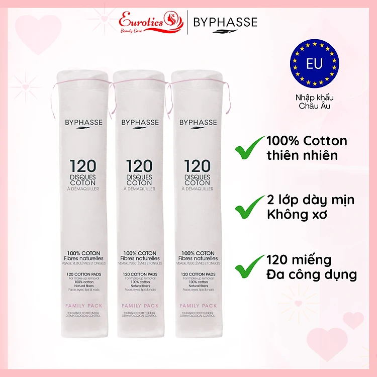 Bông Tẩy Trang Byphasse 120 Miếng Chính Hãng – Mềm Mịn, Không Xơ, Phù Hợp Mọi Loại Da