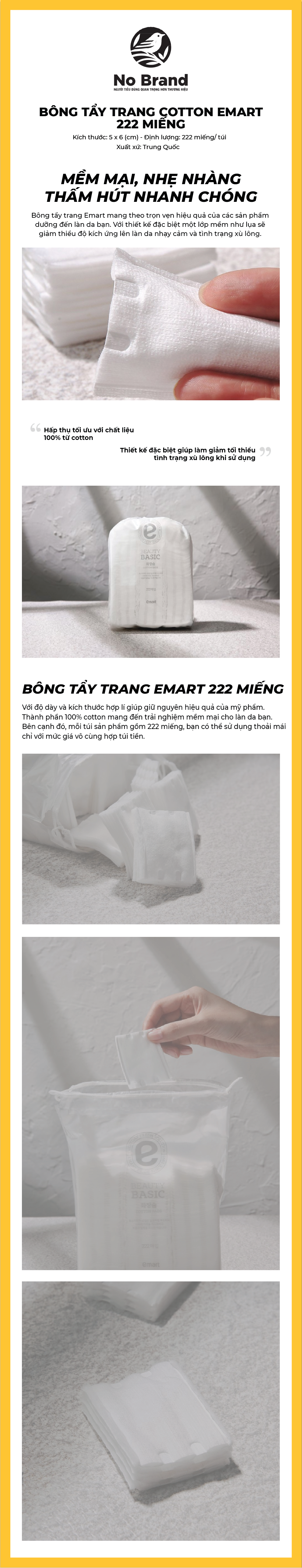 Bông Tẩy Trang Cotton Emart 222 Miếng Chất Bông Mềm Mại Cho Làn Da Không Xù Lông Tiện Dụng Tiết Kiệm - Hàng Chính Hãng Emart VN