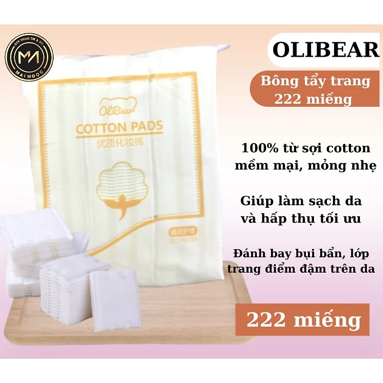 Bông tẩy trang Olibear 3 lớp Cotton Pads [Túi 222 miếng]