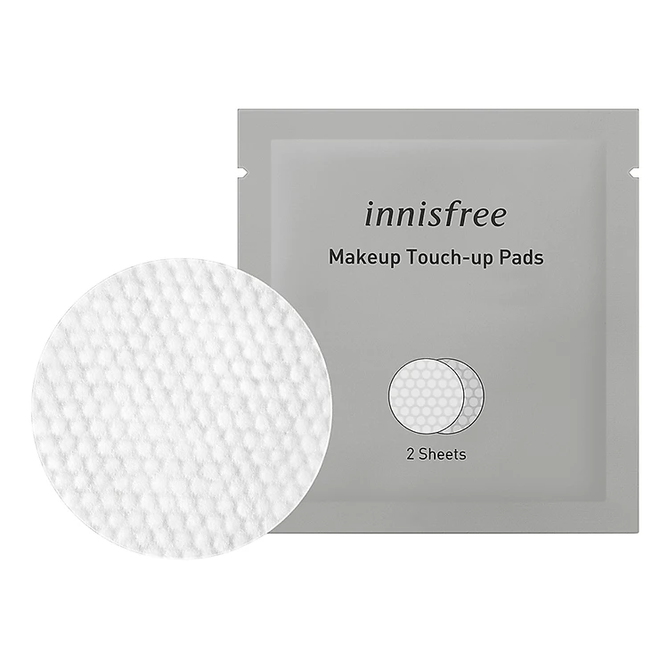 - Bông thấm tẩy trang và dưỡng da 2 miếng innisfree Make Up Touch-Up Pads 131170348 (1.6g) chứa dưỡng chất giúp làm sạch lớp trang điểm, dầu thừa , không cần rửa lại với nước và dưỡng ẩm cho da trước khi dặm lại lớp trang điểm.