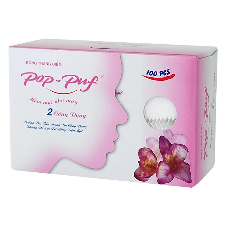 - Bông Trang Điểm Pop Puf Hồng (100 Miếng / Hộp) - Thiết kế độc đáo hai công dụng, một mặt bằng bông dùng để dưỡng da và một mặt bằng vải không dệt lỗ để tẩy trang.
