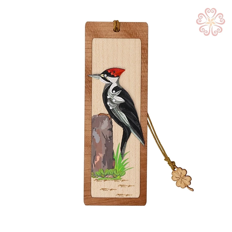 Bookmark giấy xoắn - chú chim gõ kiến - size 13.5 x 5,3 cm