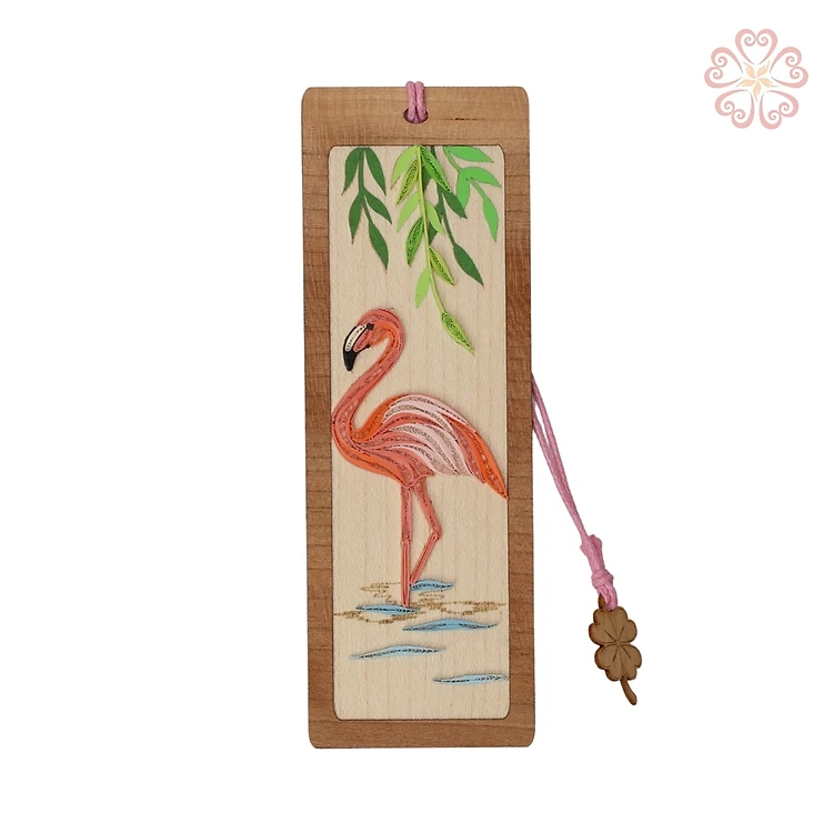Bookmark giấy xoắn - hồng hạc - size 13.5 x 5.3 cm