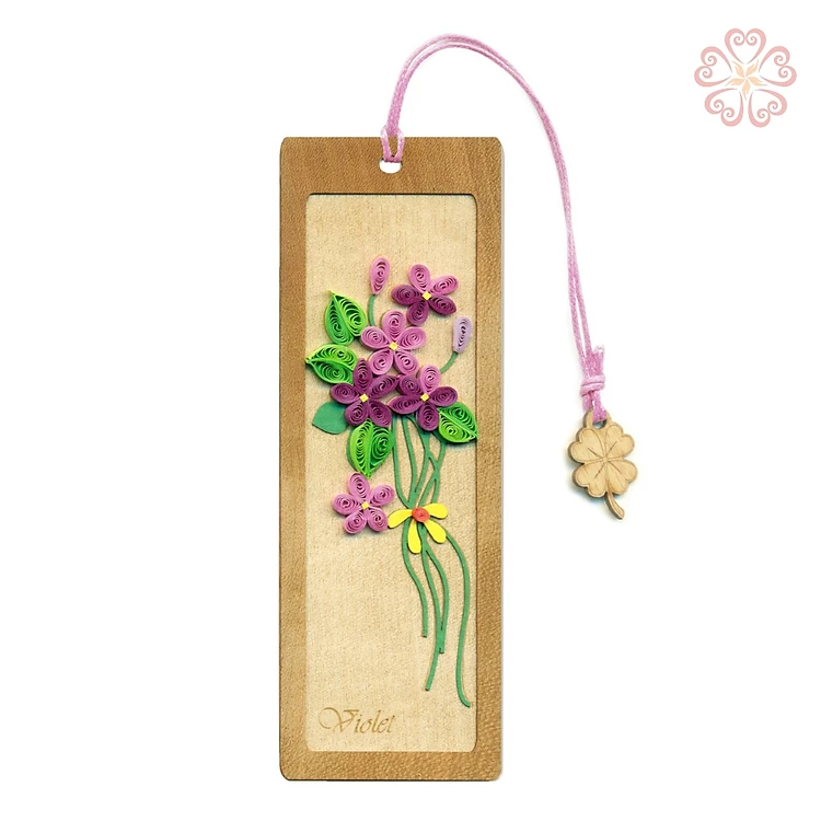 Bookmark Hoa Violet Làm Từ Gỗ Veener Kết Hợp Giấy Xoắn Nghệ Thuật Size 4.3x12.5cm