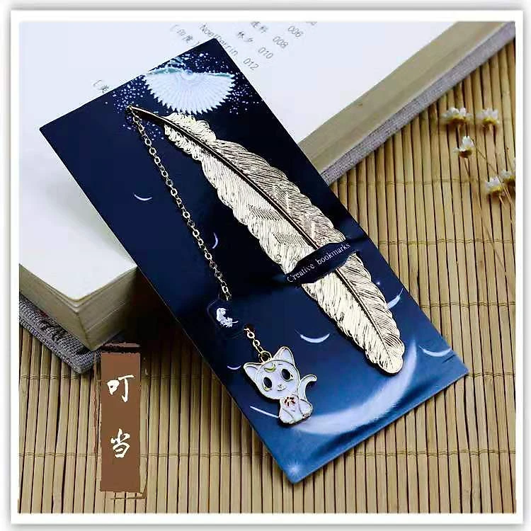 Bookmark Kim Loại Đánh Dấu Sách Hình Lông Vũ Dây Treo - Mèo Con