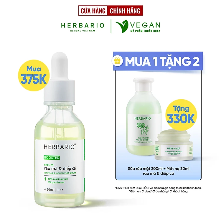 [Hàng tặng không bán] Mặt nạ Rau má & Diếp cá herbario 30ml sạch mụn thuần chay