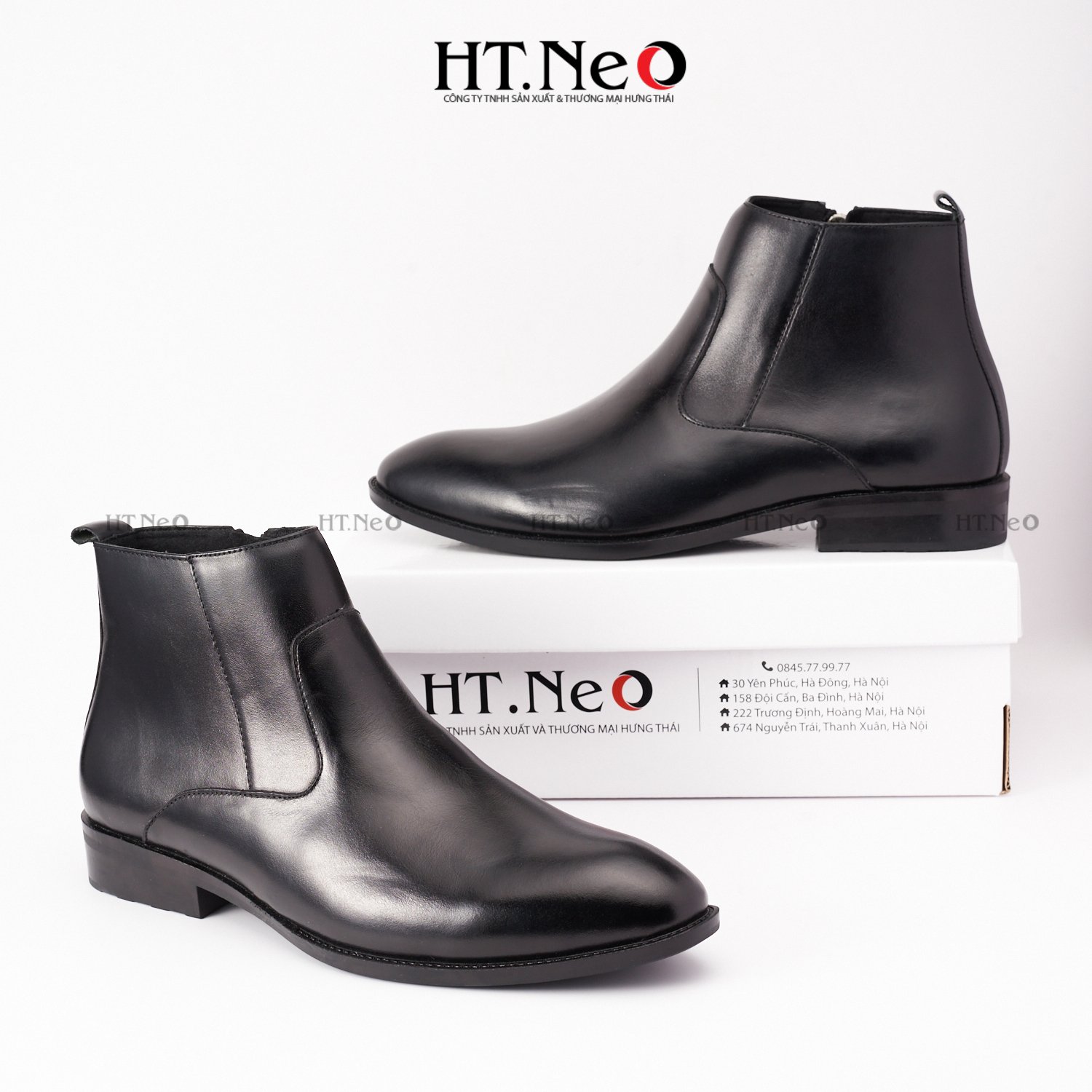 Khác với những mẫu bốt trên thị trường, bốt HT.NEO có những thiết kế đặc biệt, phần mũi thon nhọn, cổ giày được sử dụng chun may bo, cổ bốt nhỏ ôm gọn cổ chân giúp cho người mang sẽ cao hơn, lịch lãm hơn