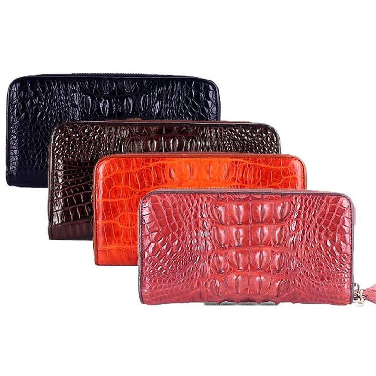 Bóp nữ da cá sấu Huy Hoàng 1 khóa gai màu đen, nâu đỏ, vàng bò, nâu đất HC3237-38-39-40