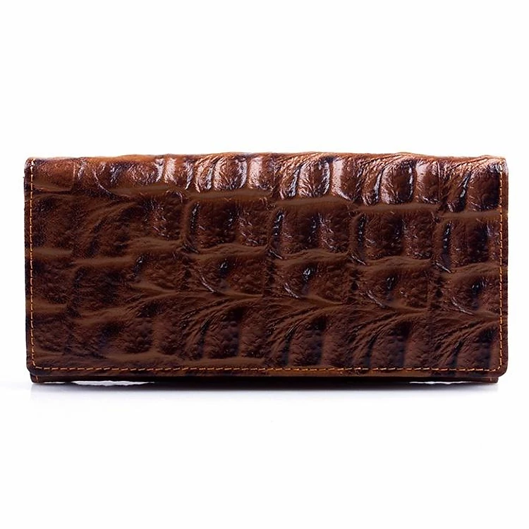 Bóp nữ da thật vân cá sấu Huy Hoàng 2 gấp vân lớn màu đen, nâu, vàng bò HC3116-17-18