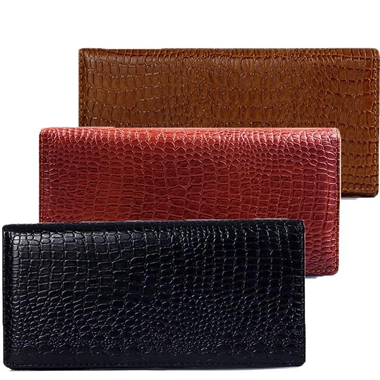 Bóp nữ da thật vân cá sấu Huy Hoàng 3 gấp vân nhỏ màu da, đen, nâu HC3105-06-07