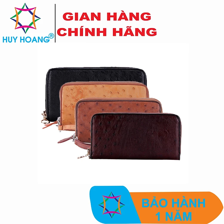 Bóp nữ da đà điểu Huy Hoàng 2 khóa màu đen, nâu đỏ, vàng bò, nâu đất HT3440-41-42-43