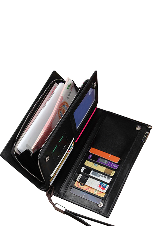 - Ví kéo khóa an toàn. Cấu trúc bên trong gồm 2 ngăn ví dài để tiền, 2 khoang rộng rãi để điện thoại, 1 ngăn kéo khóa, 1 ngăn để ảnh, 11 ngăn cài thẻ. Ví kèm dây đeo tay thuận tiện.
