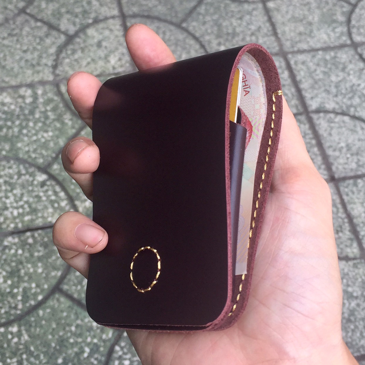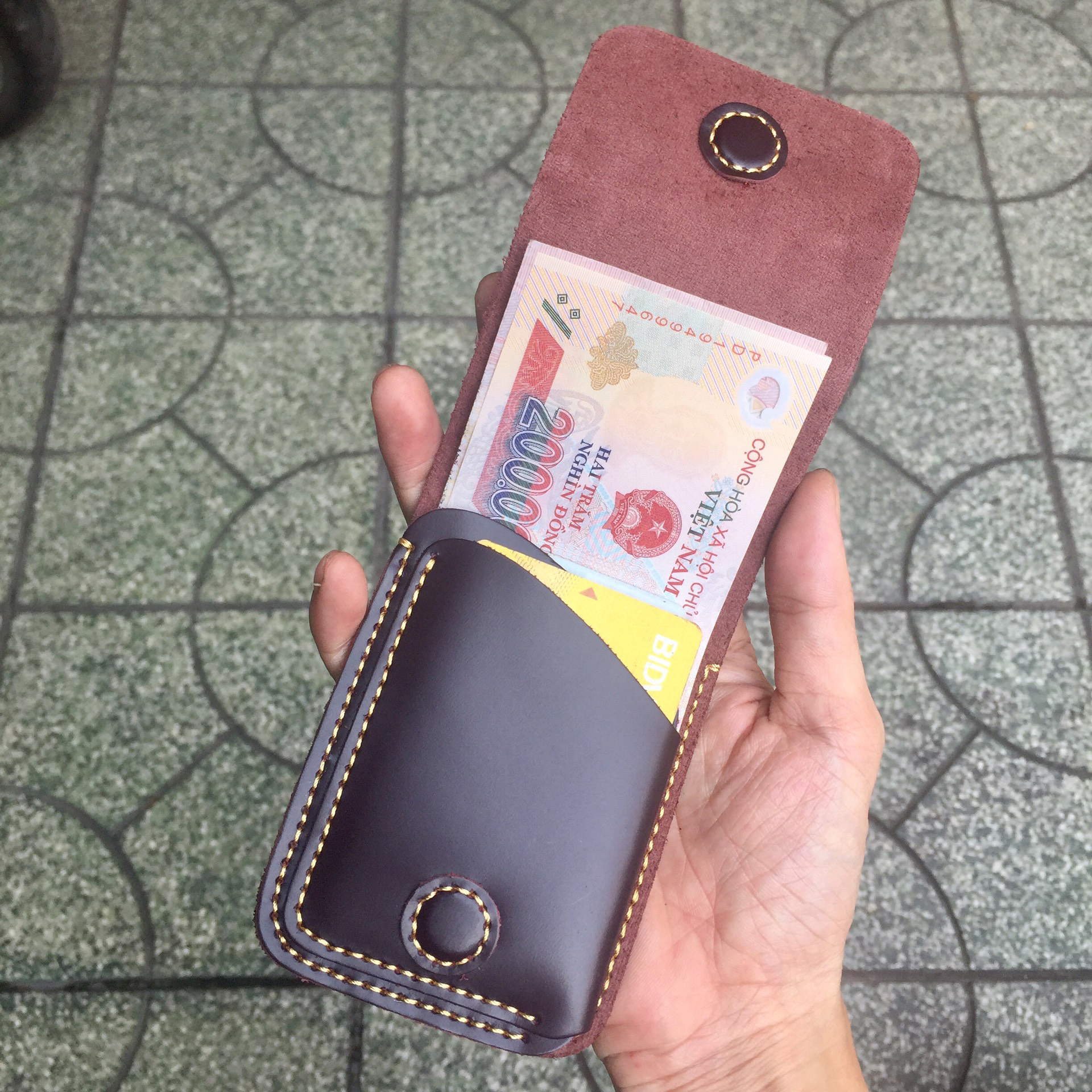 Chất liệu ví sen 3 được làm từ da thật bền đẹp
