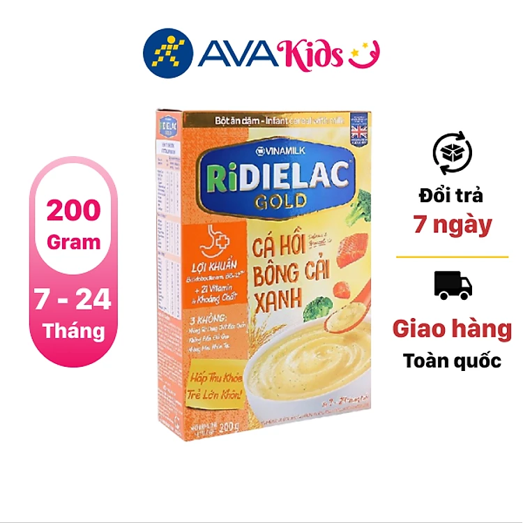 Bột ăn dặm Ridielac Gold cá hồi bông cải xanh hộp 200g (7 - 24 tháng)