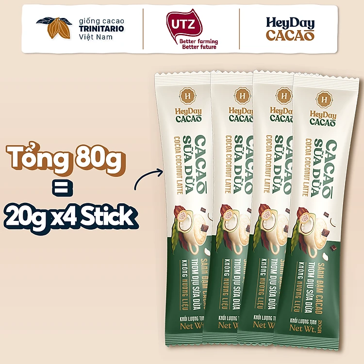 Bột Cacao Sữa Dừa Heyday - Gói Tiện Lợi 20g - Bột cacao sữa dừa tự nhiên, thuần chay - Heyday Cacao