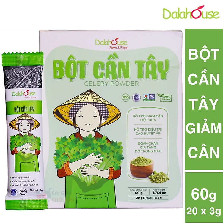 Bột cần tây hữu cơ nguyên chất sấy lạnh Dalahouse - Mẫu mới 2022 Hộp - Hỗ trợ giảm cân, cao huyết áp, ngăn chặn gia tăng mỡ trong máu