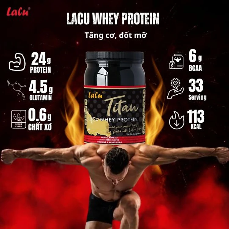 Bột đạm Lacu Whey Protein Vị vani Trọng lượng 1kg - Hỗ trợ tăng cơ đốt mỡ - Hàng chính hãng nhập khẩu nguyên hộp
