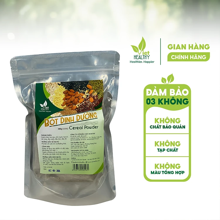 Bột Dinh Dưỡng Viet Healthy 500gr - Bột Ngũ Cốc VietHealthy- Thành Phần: Hạnh nhân, Hạt sen, Yến mạch, Hạt kê, Mè vàng, Đậu xanh, Đậu đen, Đậu đỏ.