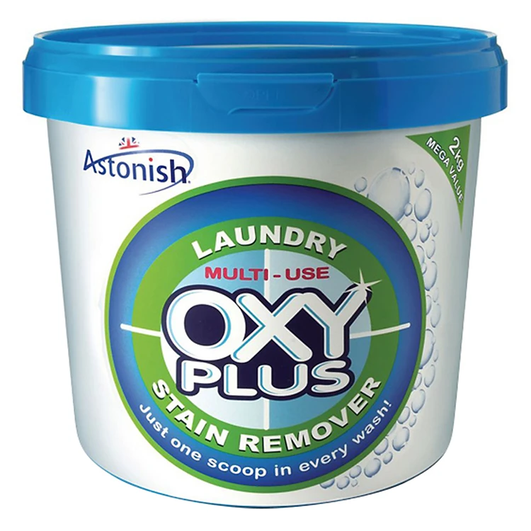 - Bột Giặt Astonish Oxy Plus C1495 (2kg) có tác dụng tẩy siêu linh hoạt, là loại bột giặt hoàn toàn không chứa xút NaOH, không ăn da tay, không làm bay màu, không làm mục vải.