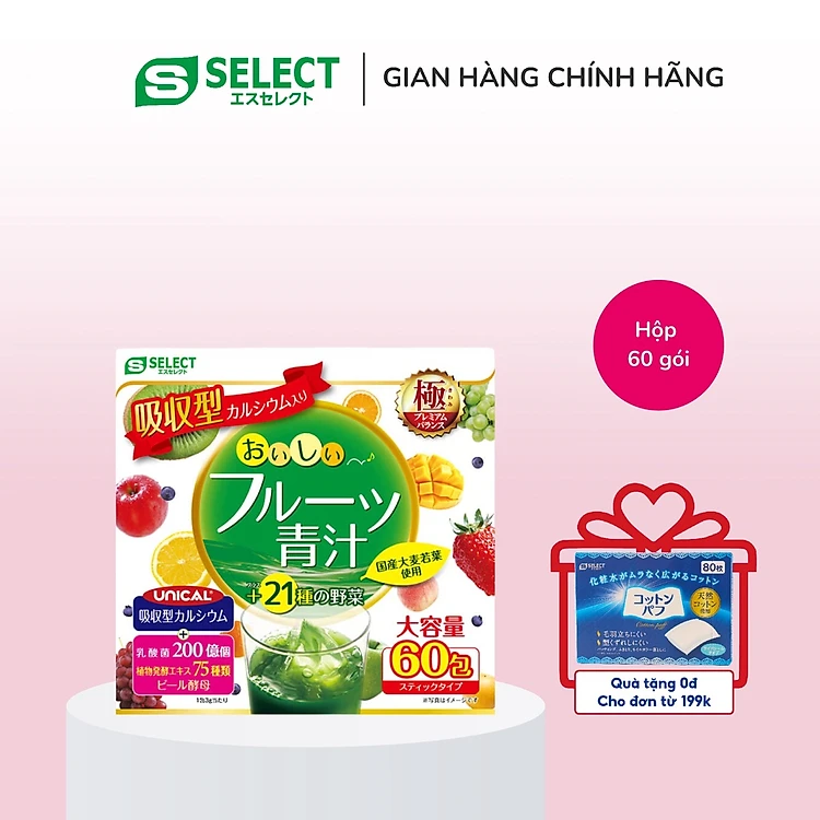 Bột lá đại mạch non, rau xanh và trái cây S Select Nhật Bản ( hộp 60 gói)