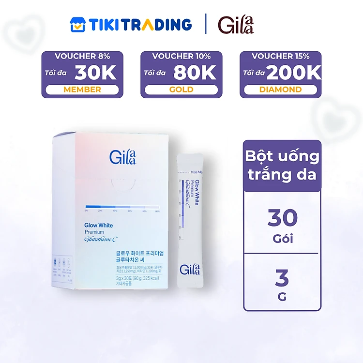 Bột Uống Trắng Da Bật Tone GILAA Glow White Premium Glutathione C (3g x 30 gói)